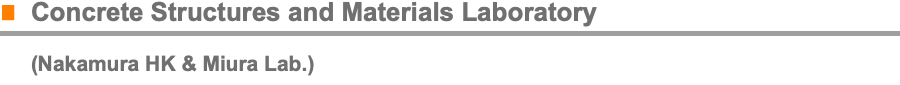 Concrete laboratory is trying to construct high quality concrete structures from material, design and maintenance sides. The study area expand to structural analysis, seismic design, performance evaluation of existing structures, fire resistance, impact loading, time-dependent behavior, rebar corrosion, chemical degradation, non-destructive inspection, etc… Teacher and students discuss not only about researches but also the daily life.